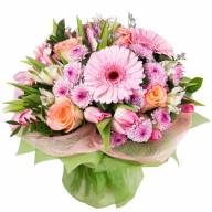 Оригинальный цветочный микс из гербер, хризантем, роз, тюльпанов и альстромерий – это невероятное сочетание нежных, пастельных оттенков, собранных воедино. Такая композиция придется по душе, как молодым девушкам, так и горячо любимым женам, олицетворяя настоящую красоту любви.
